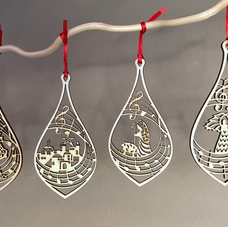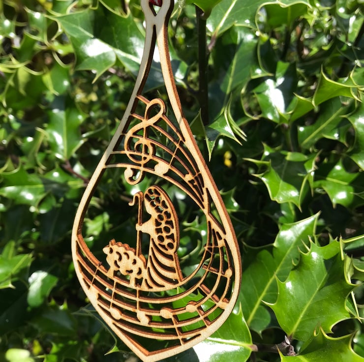 Cut from 3mm plywood, this original design incorporates the opening notes of a Christmas carol: While Shepherds Watched.