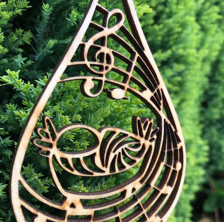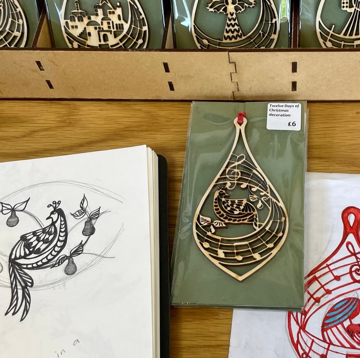 Cut from 3mm plywood, this original design incorporates the opening notes of a Christmas carol: Away in a Manger.