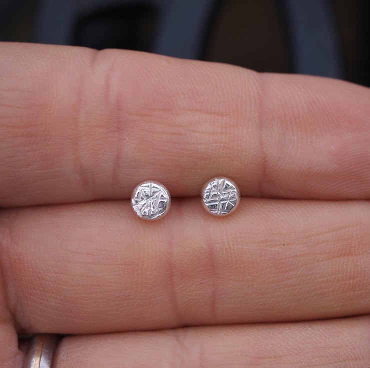 The pebbles have been hammered and given a 'shattered glass' texture. These are great little earrings for everyday wear, ideal for anyone that likes smart minimalist jewelry.
