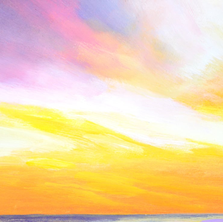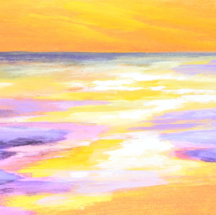 Sweet Sunset original acrylic seascape painting captures the serene beauty of a sunset over the ocean and the wonderful colours of nature, inviting you into a world where warm hues of orange, pink, and gold dance across the sky. The gentle waves reflect the vibrant colors, creating a mesmerizing interplay of light and water.