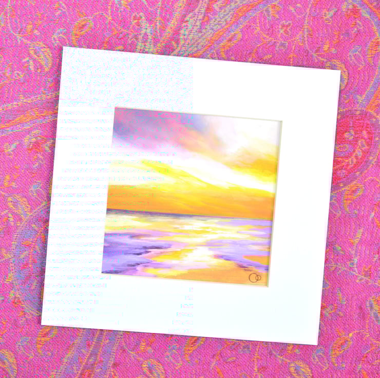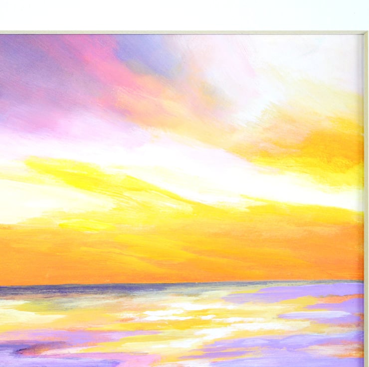 Sweet Sunset Seascape Original Mounted Acrylic Painting on Paper, mounted unframed small art