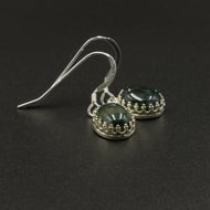 Gorgeous deep green striped Malachite stones are set in a bezel crown design silver plated setting with an open back. Ear wires are sterling silver simple hooks.