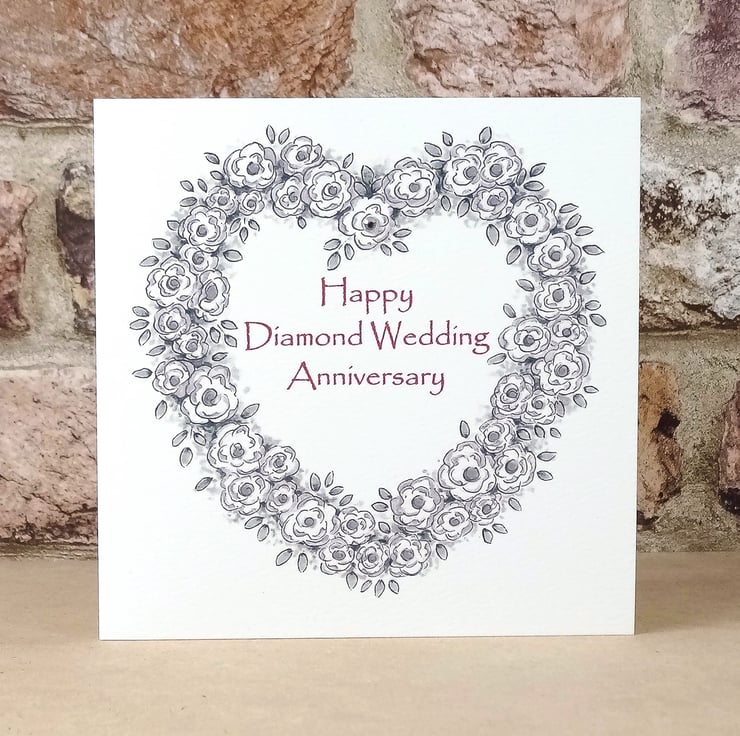 This ecofriendly Diamond Wedding Anniversary card has been printed using 100% recycled white felt finish 270g card. These cards have lovely textured finish.
