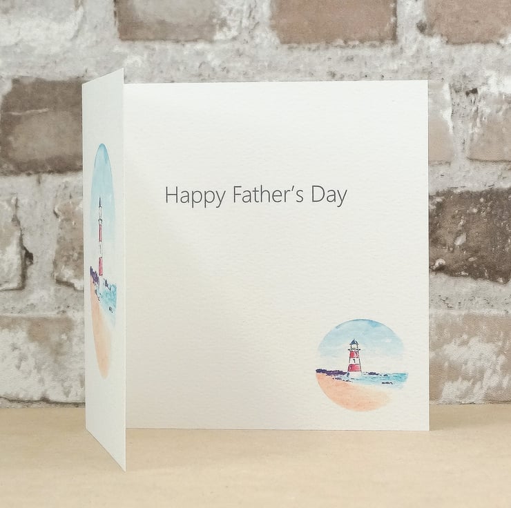 This Lighthouse Father's Day card has been printed using my original artwork on to 100% recycled felted white 270g card and has the words 'Happy Father's Day' on the inside. It has been printed on Felt white card has a lovely textured finish. Size 140 x 140 mm