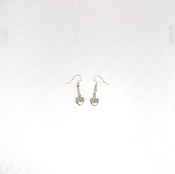 A precious handmade, set of silver plated, heart earrings. Easy to wear, simply slip them on.