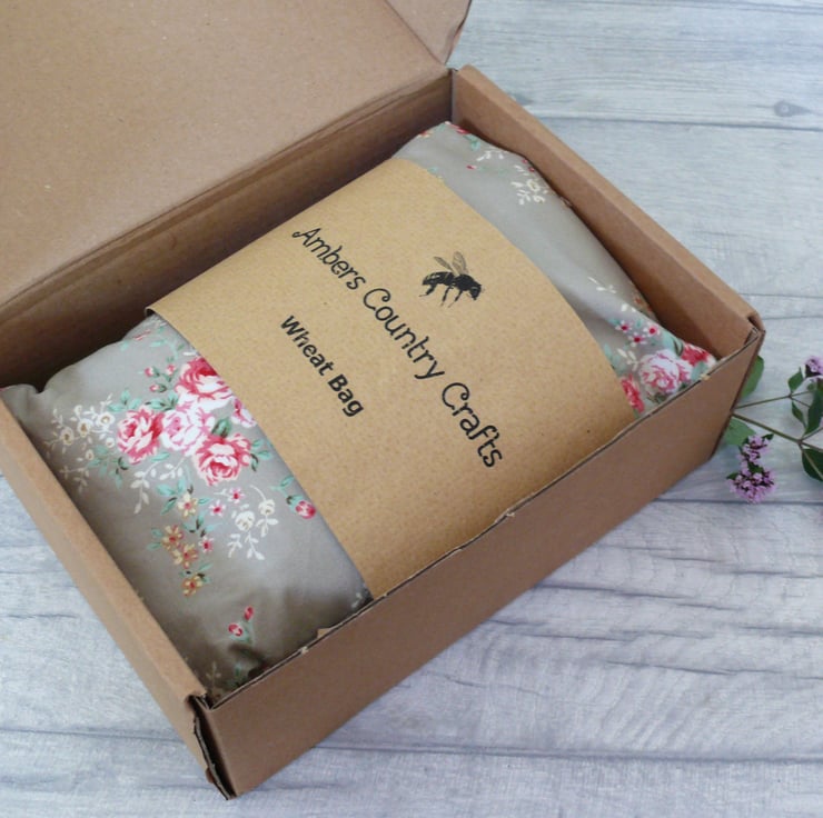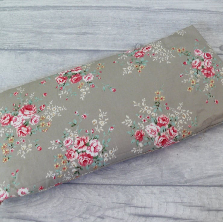 Handmade wheat bag, using grey flower fabric. 100% cotton.