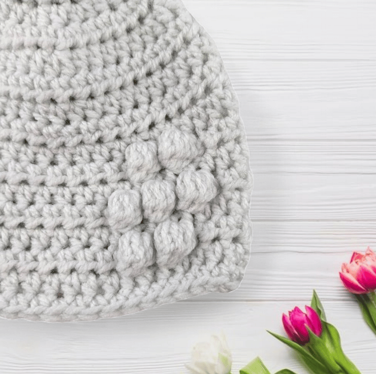 Celebrate the subtle elegance of light grey and the playful accents with this Light Grey Baby Crocheted Hat, a delightful piece that effortlessly combines coziness and charm. Pattern by Kerry Jayne Designs.