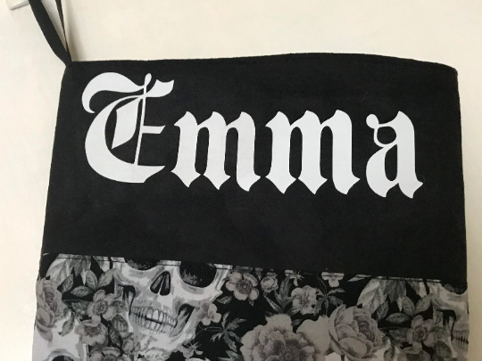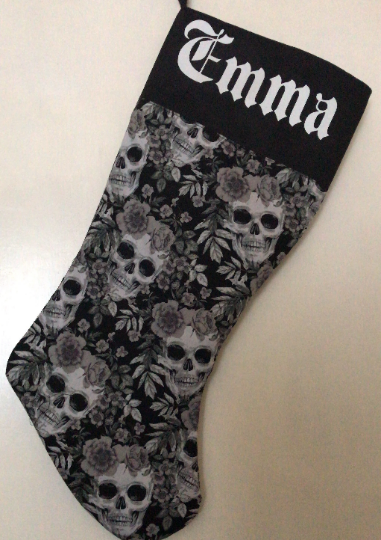 Handmade Christmas stocking gothic personalised with the name of your choice