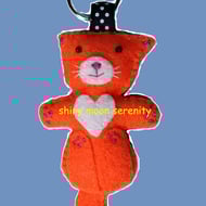 It is lightly stuffed with polyester toy stuffing and there is a split ring attached by a ribbon to each key ring.