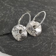 Offcuts of 9ct yellow gold have been melted down and turned into square wire. I have made circular 3/4 hoops and soldered on gold ear posts. They have gold butterfly fittings.
