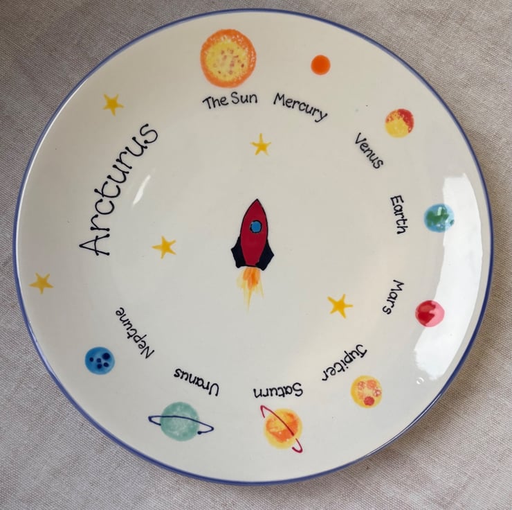I start with a blank item of bisque - the name for a blank piece of unfired pottery. This is my canvas and then I draw on the design before painting with special paint. The item is then glazed and fired in an industrial kiln to 1000 degrees. This is a lengthy process and takes a full 8 hours to heat up and another 8 hours to cool down. There s lots of processes to go through to create your pieces hence the 1-2 week turnaround time. Please let me know if you have any questions about the process or would like me to create anything bespoke.