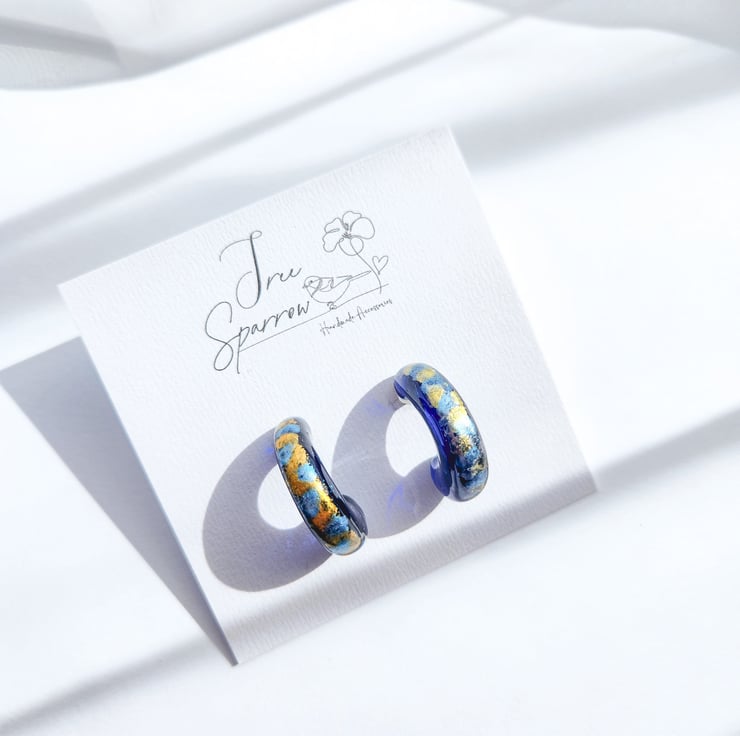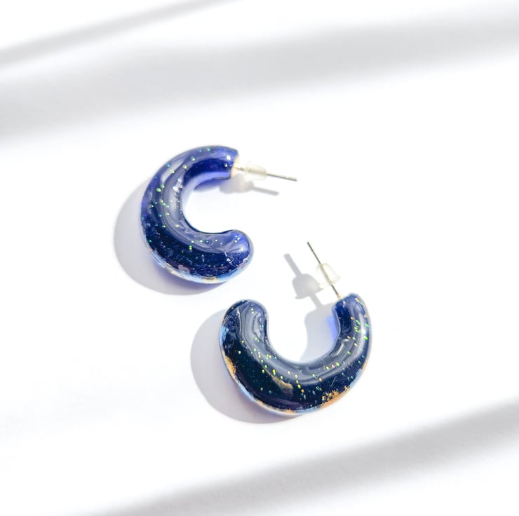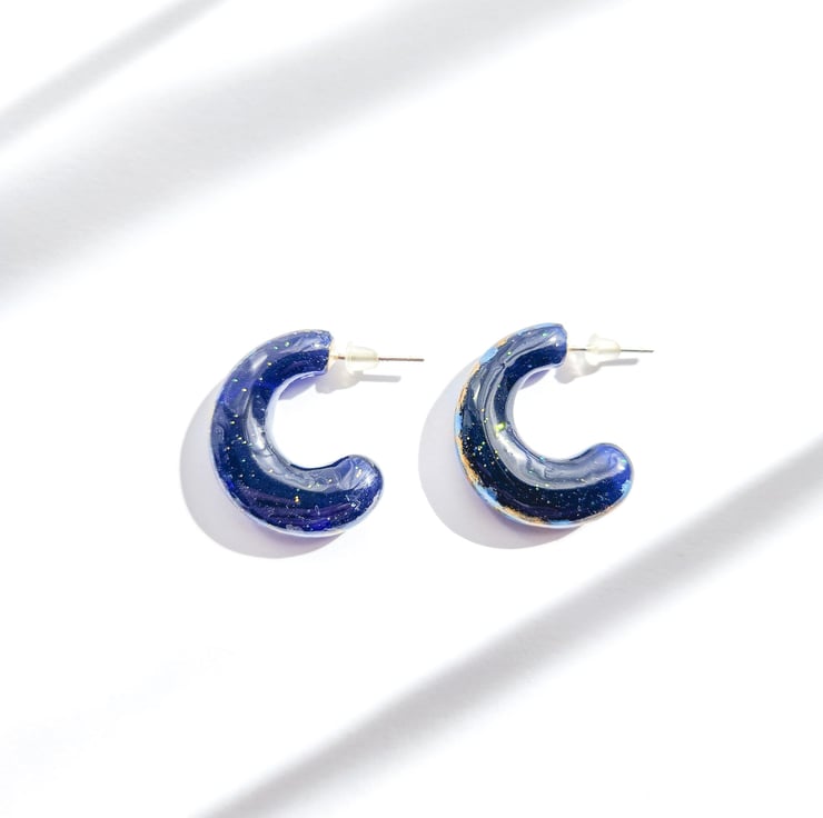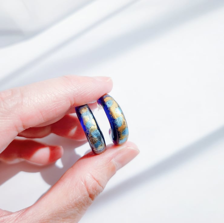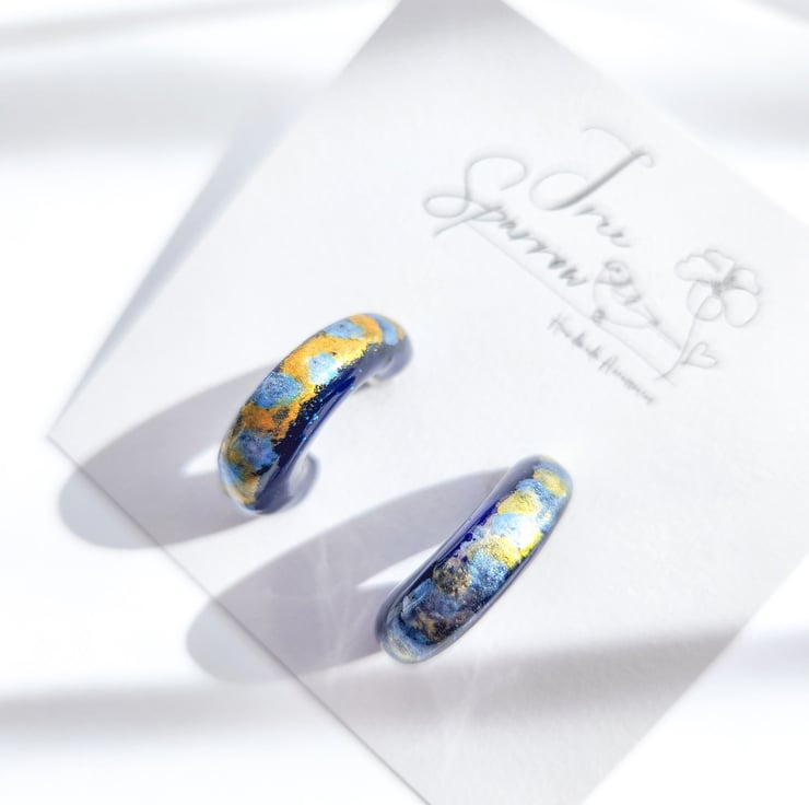 These unique hoop earrings are hand-painted using watercolour, creating soft, flowing blends of colour sealed within clear resin. The organic brush-like patterns give an expressive, painterly fell, like wearing a miniature artwork.