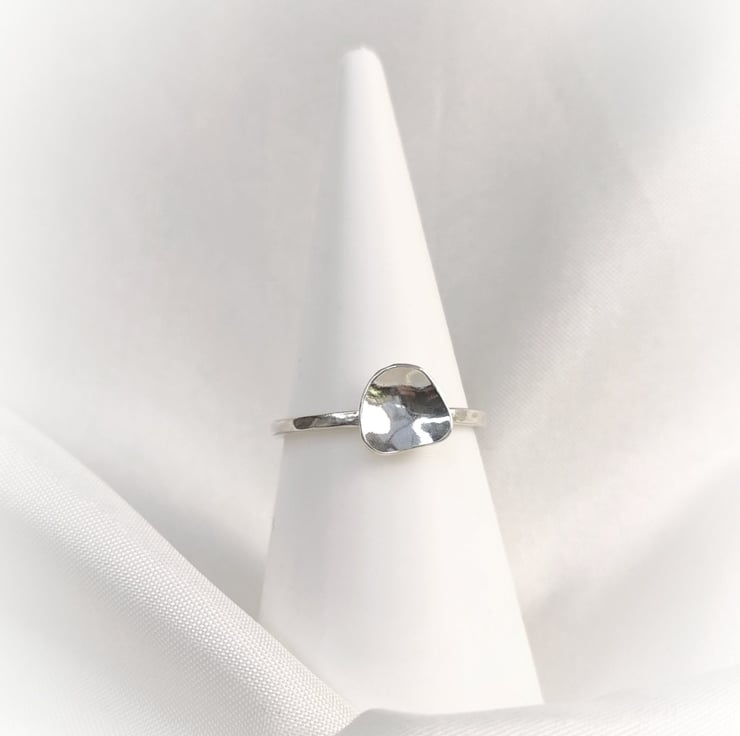 Modern, minimalistic, delicate ring with irregular triangular accent on the top.