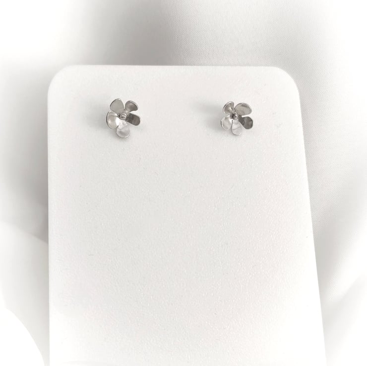 Delicate silver flower studs with rounded silver scrolls