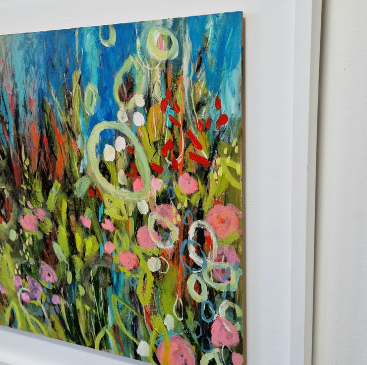 Vibrant floral abstract painting by Jackie Reynolds Artist.