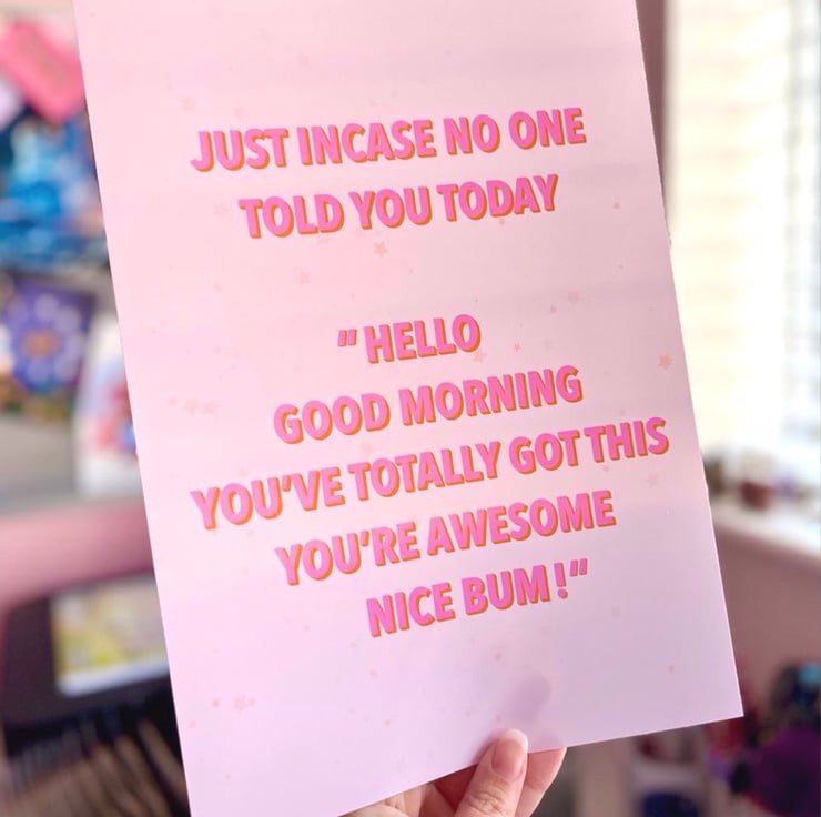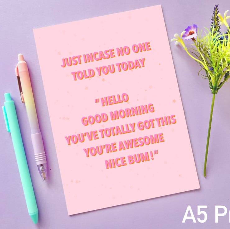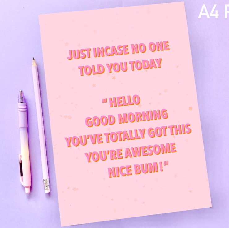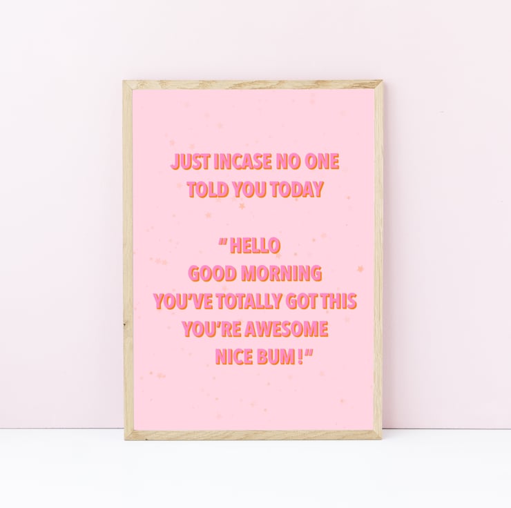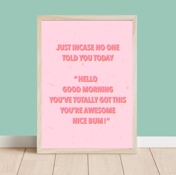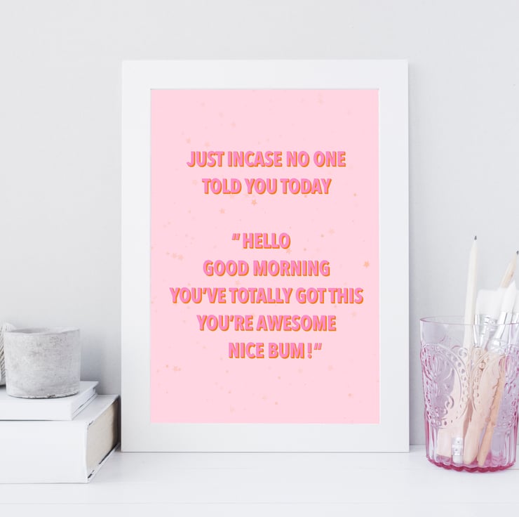 Add some positivity to your office or home space with this funny, but positive nice bum print.