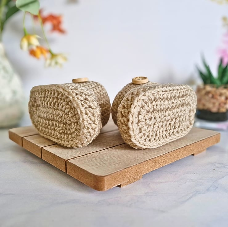 Each pair is carefully hand-crocheted in one seamless piece using Stylecraft Special DK yarn – a premium 100% acrylic yarn that's gentle on delicate newborn skin. The booties feature a folded cuff for a snug fit, and the wooden button adds a special keepsake detail.