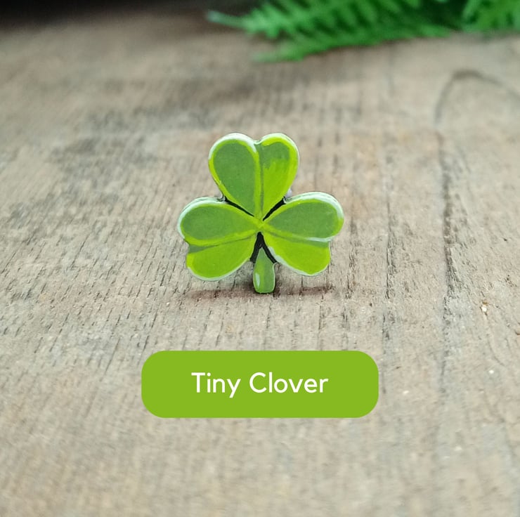 Handmade Four Leaf Clover Pin – Lucky Clover Brooch – Wooden Good Luck Gift – Tiny Hand Painted Jewellery