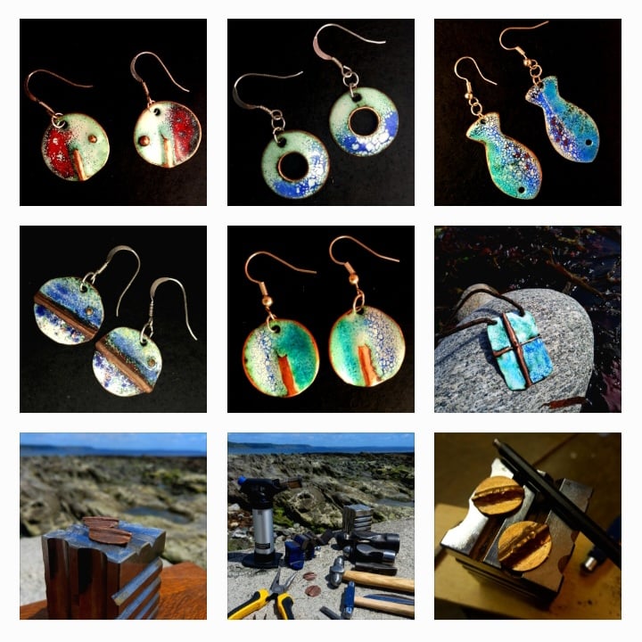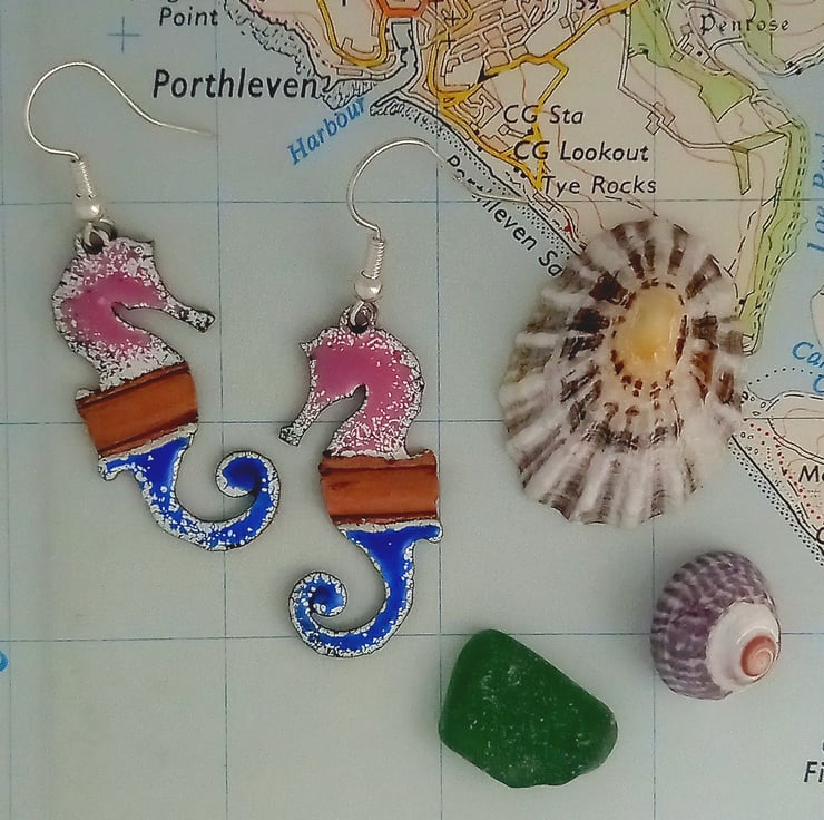 Inspired from the marine colours of the Cornish coastline, metal folded and has beautiful tactile ridge included. Covered with pink and blue glass enamel powder, melted at 800 degrees centergrade.