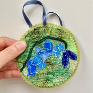 This beautiful autumn leaves garland or bunting is made from pre felt scrap that’s been wet felted and enhanced with free motion embroidery. There are 8 leaves hanging from jute string with up-cycled fabric backing.