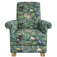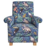 This lovely adult's armchair measures approximately 38 inches in height, by 26 inches wide and will look gorgeous in any room and is a real accent piece of furniture. It has a wooden frame and has a Schedule 3 fire retardant interliner, which makes it compliant with UK fire regulations. It is then upholstered entirely with this gorgeous fabric, and has solid wooden feet.