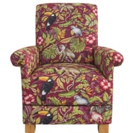This is a handcrafted, sturdy adult sized armchair, which has been made by myself, a professional upholsterer with over 32 years experience, using Jungle Boogie fabric.