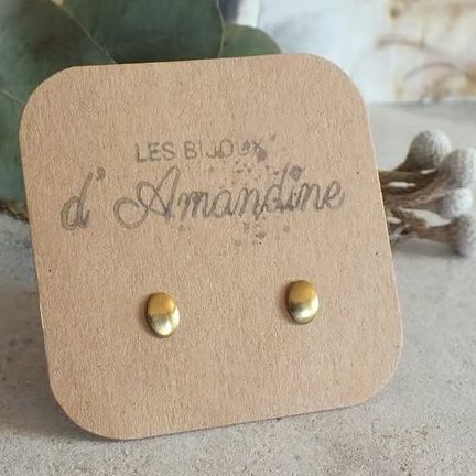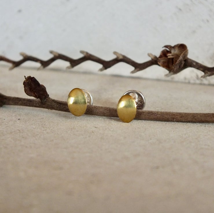 These small oval studs are handmade from brass and gently domed to catch the light. Their minimal form and soft curves make them an easy everyday piece, subtle, warm and luminous. These brass ovals are finished by hand in a polished mirror finish. The studs are soldered onto sterling silver posts and completed with sterling silver backs for comfortable daily wear.