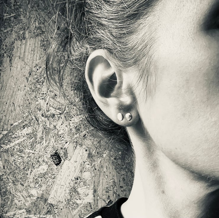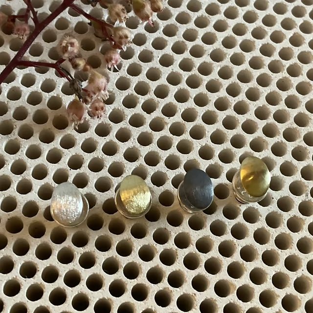 Thoughtfully curated, this set of four mismatched studs balances silver and brass with a mix of textures and finishes, creating a playful, design-led take on everyday earrings. Each earring is unique, yet the proportions and contrasts are harmoniously balanced - a miniature composition in metal.