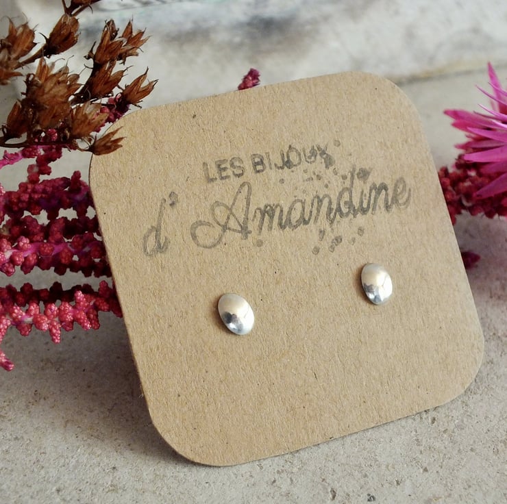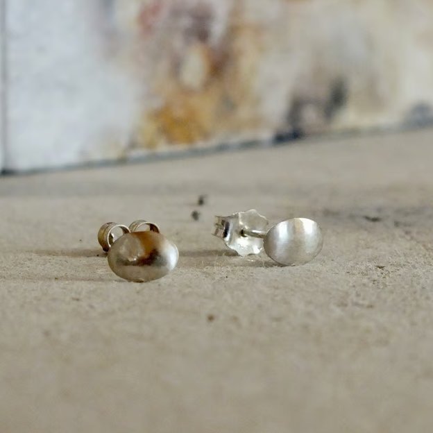 These bright oval studs are made from sterling silver and gently domed to capture the light. Their polished surface reflects a luminous glow, highlighting their gentle curves. Minimal and refined, they are thoughtfully crafted to bring understated elegance to daily wear.