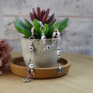 High quality stitch markers for knitting, row counter chains, knitting cords & stoppers, magnetic pattern marker guides, cardigan clips & useful tools for knitting & crochet.