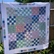 Stunning handmade quilt in a checker board design in gingham cotton fabric. Smart clean lines, at home on the bed or sofa.