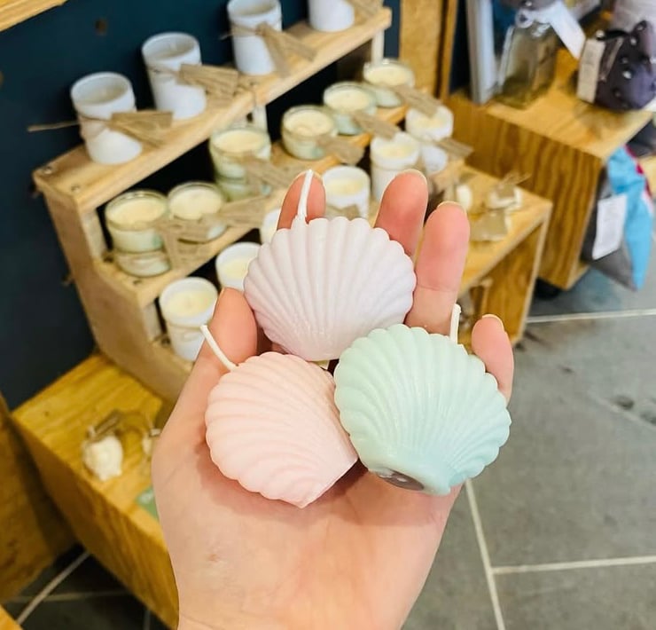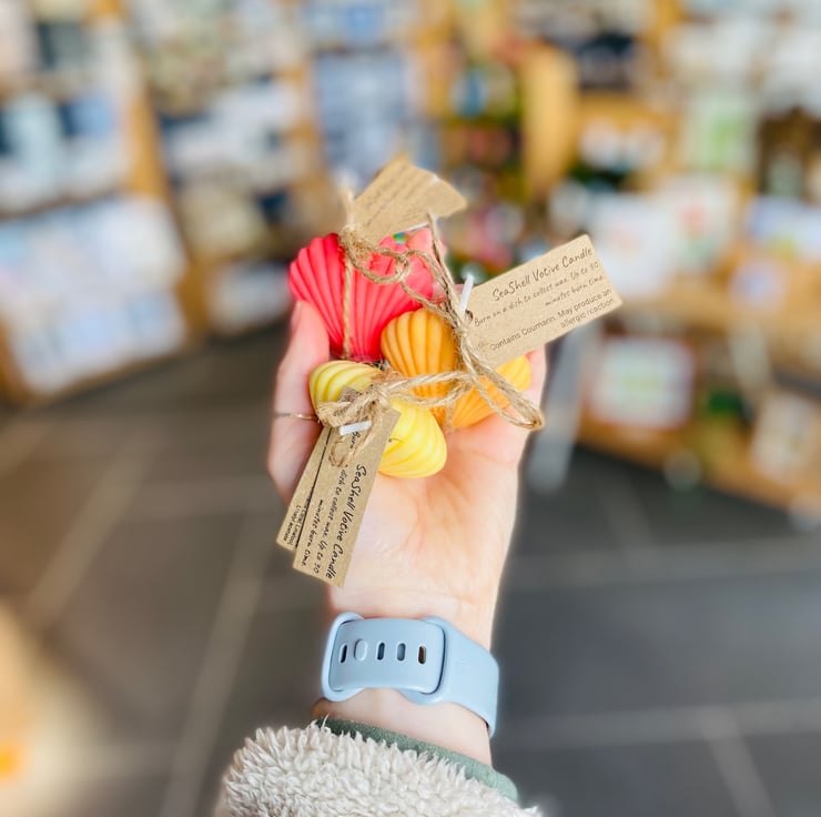Sea Shell votive candles made with soy wax and poured by hand. They burn for around 20-30 minutes and any leftover wax can be used on a wax melt burner.