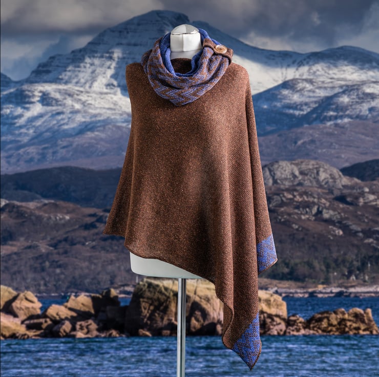 Silk - silk is just luxury in a word and so comfortable to wear, it gives the poncho a lovely drape and alters the texture of the yarn to create a very tactile and soft to the skin poncho. It's also one of the strongest natural fibres and lightweight, breathable and hypoallergenic.