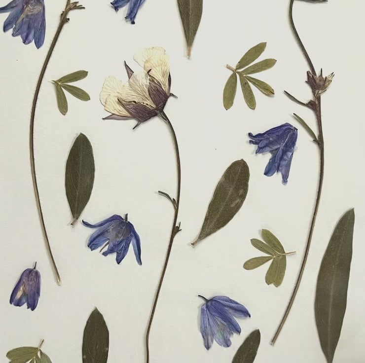 I grow most of our pressed flowers and foliage in our garden in Hampshire. I also forage locally.