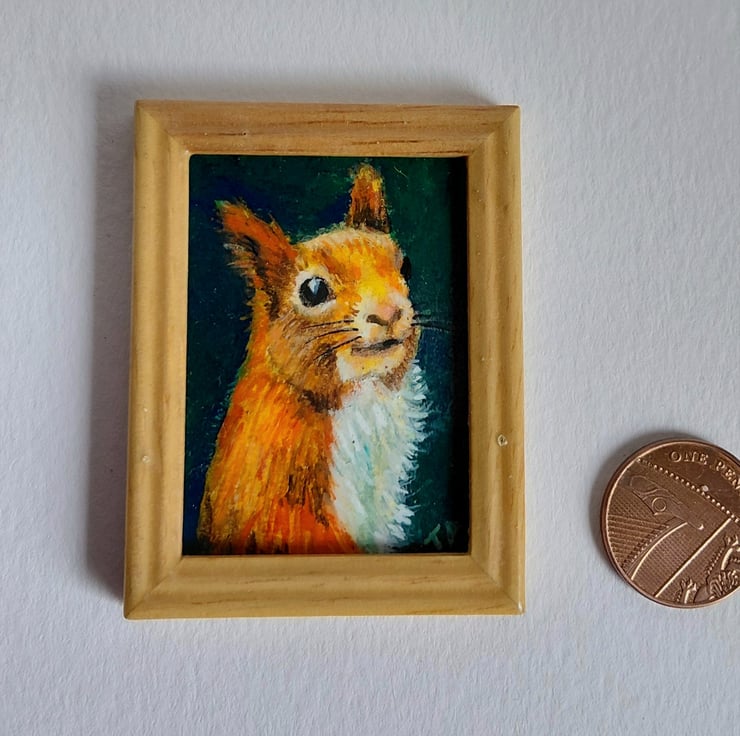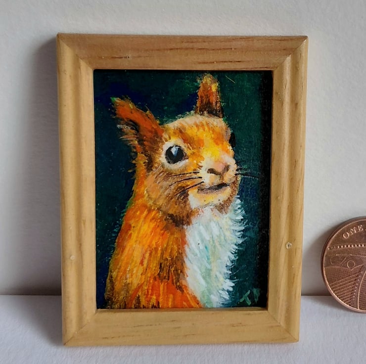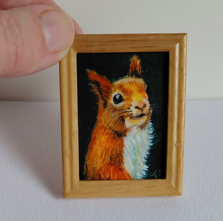An original oil painting 'Red Squirrel Portrait' Miniature Painted by Traceyann Papworth.