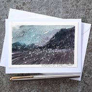 Handpainted Watercolour, mounted onto black paper then soft-white Card.