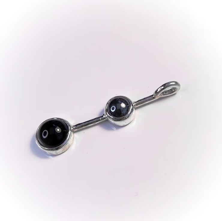Sterling silver pendant with hematite and black onyx cabochons