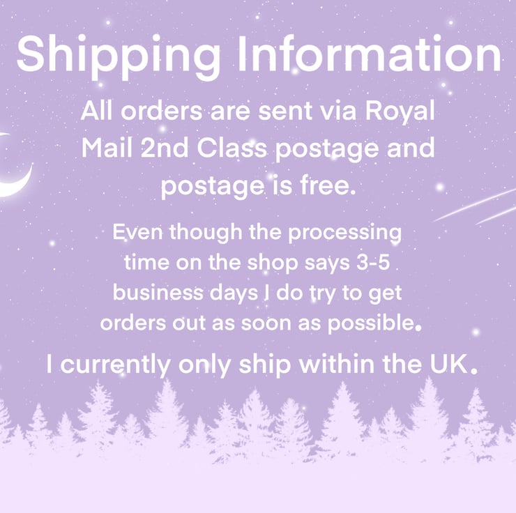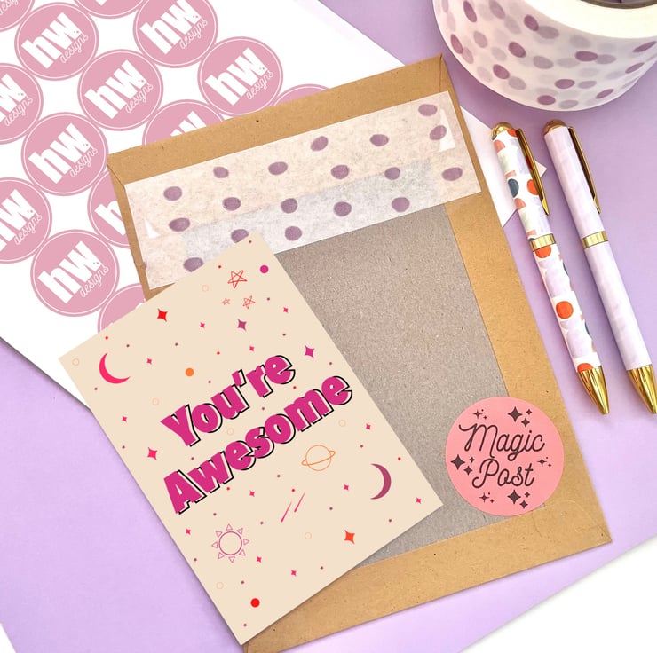 The card measures 6”x6” and they come in a biodegradable cello sleeve and a hard backed envelope to protect it as much as possible during shipping and postage is free.