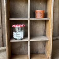 Made from old pine shelving. 12” x 8” x 6”. Solid rustic construction. Handy for storage or for display. 100 year old leather handle. Logo in green. On the reverse it carries the NATO alphabet for F & U Make of that whatever you will. Unique as ever.