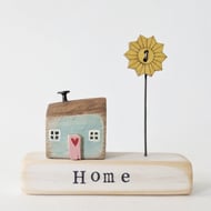 This little wooden house has been hand carved and painted and each piece is one of a kind.