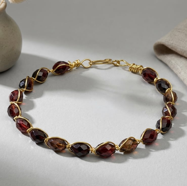 Elevate your accessory game with this stunning handcrafted bracelet featuring faceted 8x6mm Tiger's Eye beads, beautifully wrapped in tarnish-free gold-coloured wire. This exquisite bangle not only dazzles with its rich brown and gold hues that catch the light, but it also embodies the powerful qualities of Tiger's Eye—known as the "warrior's stone." Embrace courage and strength as you wear this piece, which acts as a protective shield against negative energies while enhancing mental clarity and focus. Perfectly gift-wrapped in tissue and an elegant organza bag, this bracelet makes a thoughtful gift for yourself or a loved one.