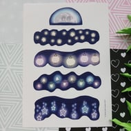 This is an A5, tear off notepad, inspired by the forest and Scandinavian folk art. Digitally hand drawn by me, the pad has approximately 50, single sided sheets, of 90 gsm paper, and has been lined for convenience.