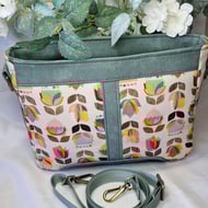 The Eden Crossbody Bag is made from soft Mora luxury faux leather in beautiful smokey green. Practical yet stylish, the front quilted slip pocket has a hidden zipped pocket. It also has a rear slip pocket which fastens with a magnetic clasp. Inside, the coordinated cotton lining has another zipped pocket plus a slip pocket. The bag closes with a recessed zip and is worn across the body with a detachable webbing strap.