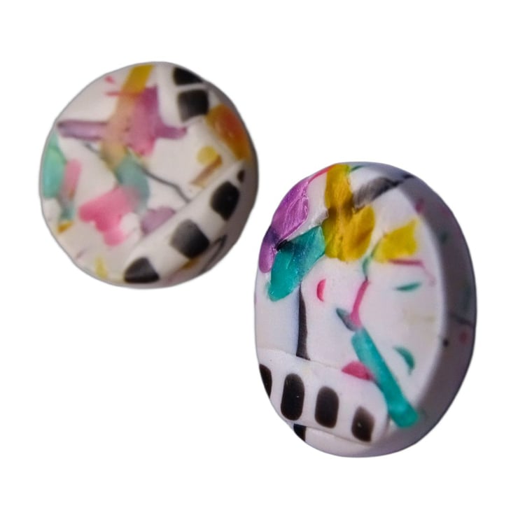 These colourful studs add a happy touch to any outfit — whether you’re dressing up for a creative outing or just brightening an ordinary day. Each pair is truly unique, made to bring a smile and a bit of artistic flair wherever you go.