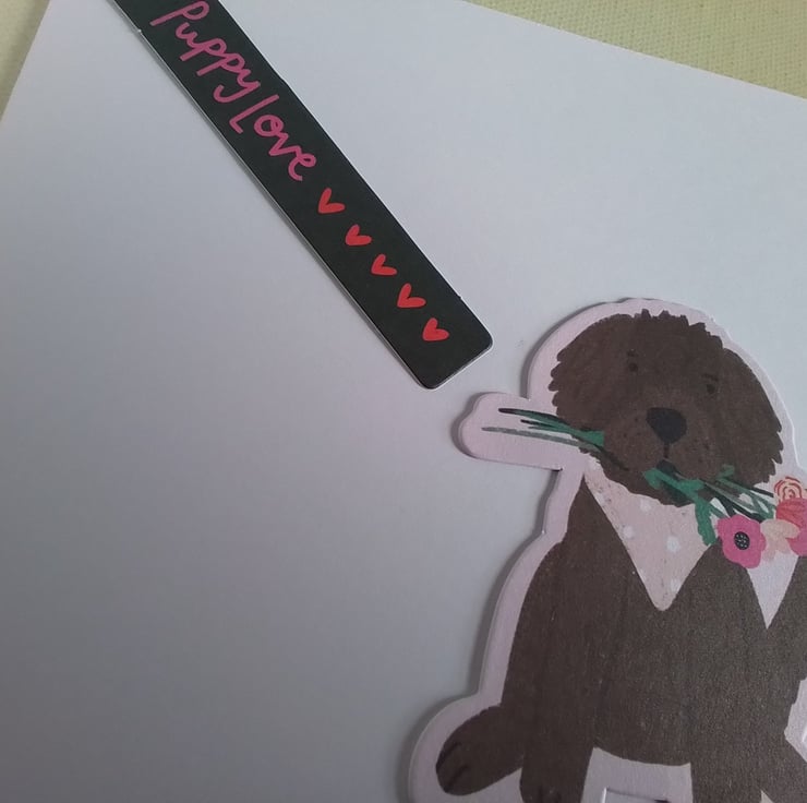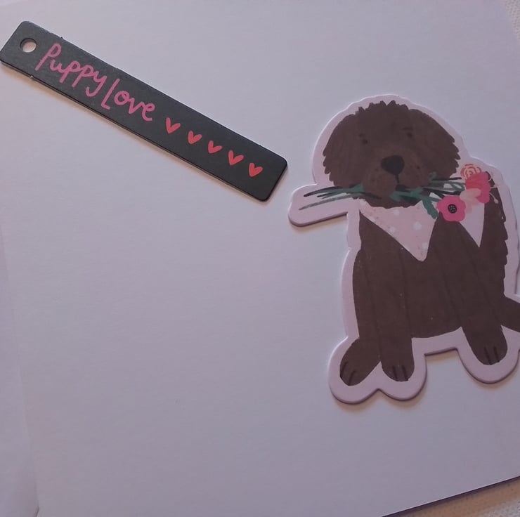 There is a puppy love tahpg on the front.