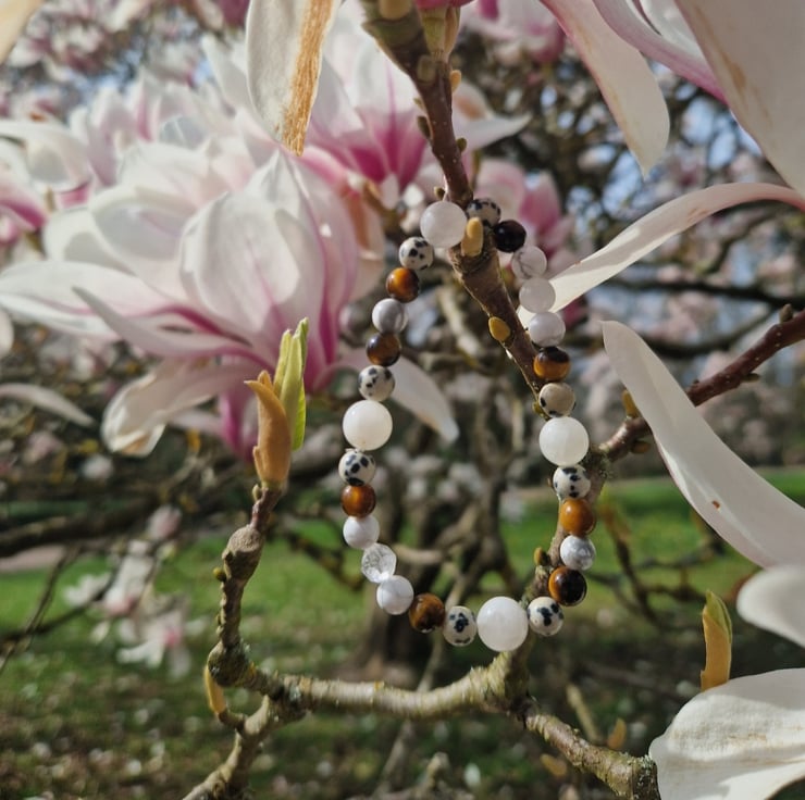 This bracelet is made with a mix of 8mm and 6mm beads for everyday comfort, and I double the elastic for lasting strength. Every bracelet is smoke cleansed before posting and gift wrapped in tissue paper ready to gift to yourself, or someone else.