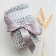 Crocheted with 2 types of yarn held together which creates a soft and squishy thickness and creates a lovely halo.