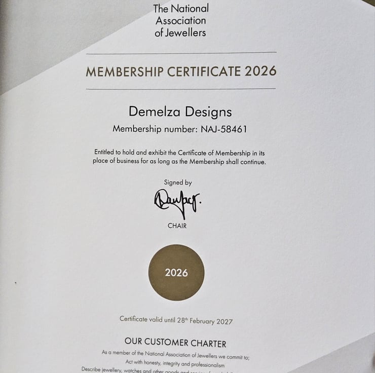 Demelza Designs jewellery is registered with the largest prestigious National Association of Jewellers as a British Jewellery Designer Craft Person having met their vigorous vetting process.