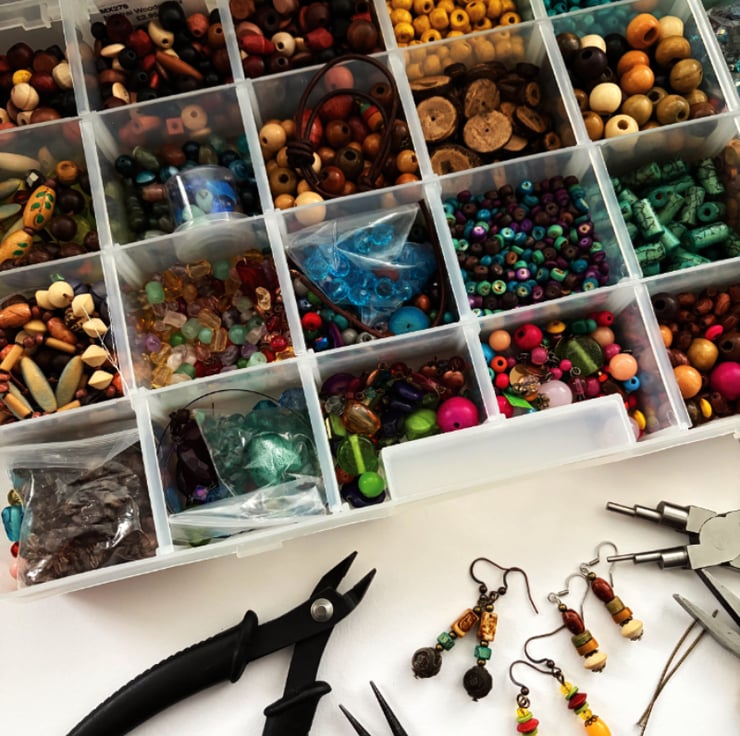 Earthy brown-grey green boho style drop dangle earring handmade by me using up-cycled and shop brought beads.