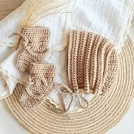 These are the Classic Booties crocheted in 100% Merino Wool with the faux suede ties. Merino sheep wool is perfect for baby clothing because it is very soft, unlike other wool which can be slightly itchy. Natural fibres are breathable and will help to regulate baby’s temperature.